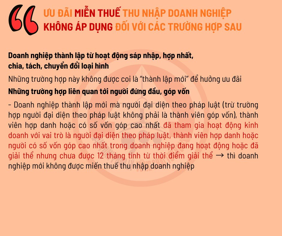 – Có người đại diện theo pháp luật, thành viên hợp danh hoặc người có số vốn cao nhất đã là người đại diện theo pháp luật, thành viên hợp danh hoặc người có số vốn cao nhất tại doanh nghiệp khác, hoặc doanh nghiệp mới giải thể chưa đủ 12 tháng.
